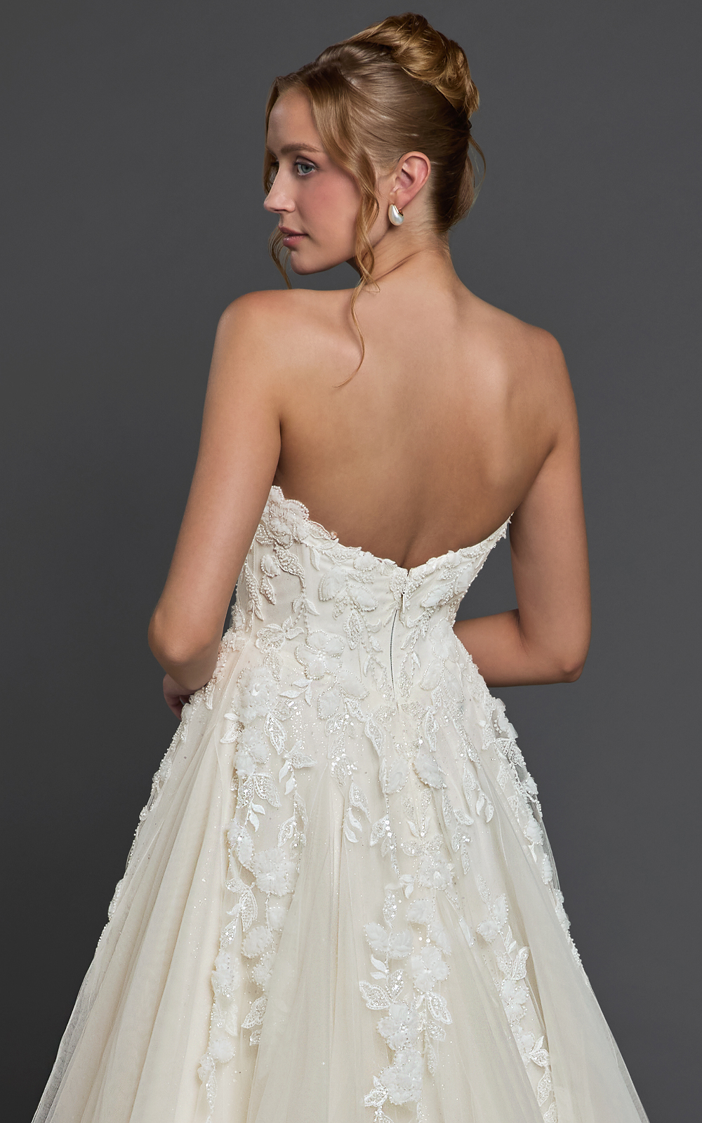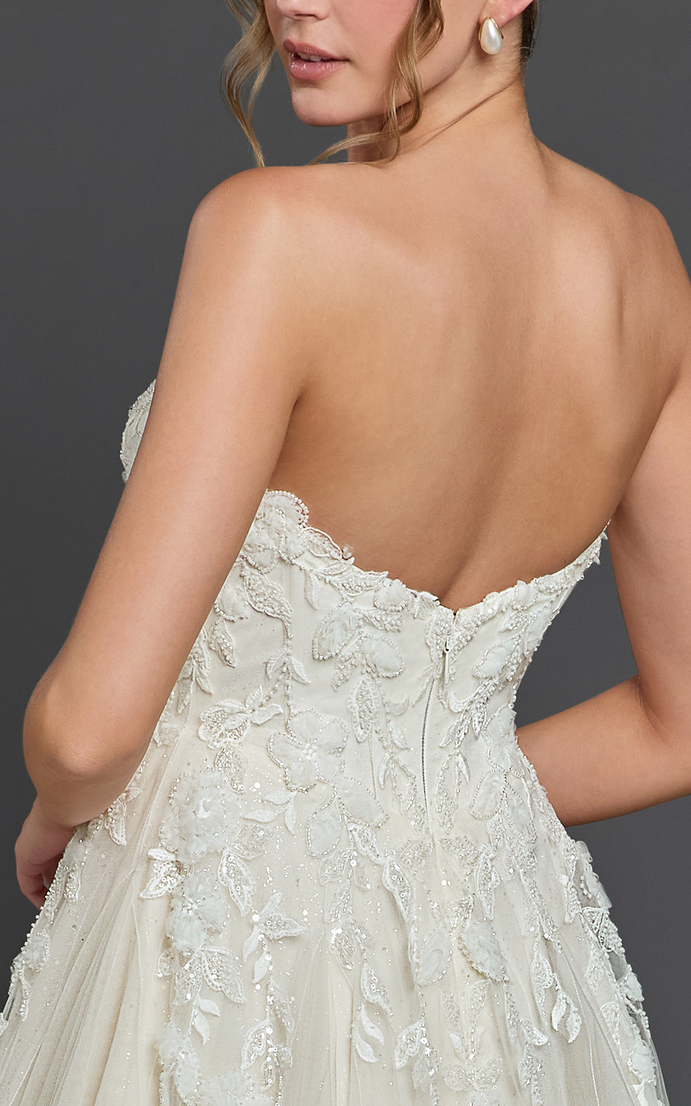 Note: Some styles have ease added for your comfort. If you are in between sizes, it is suggested to call and speak to a stylist or order the dress in custom size.