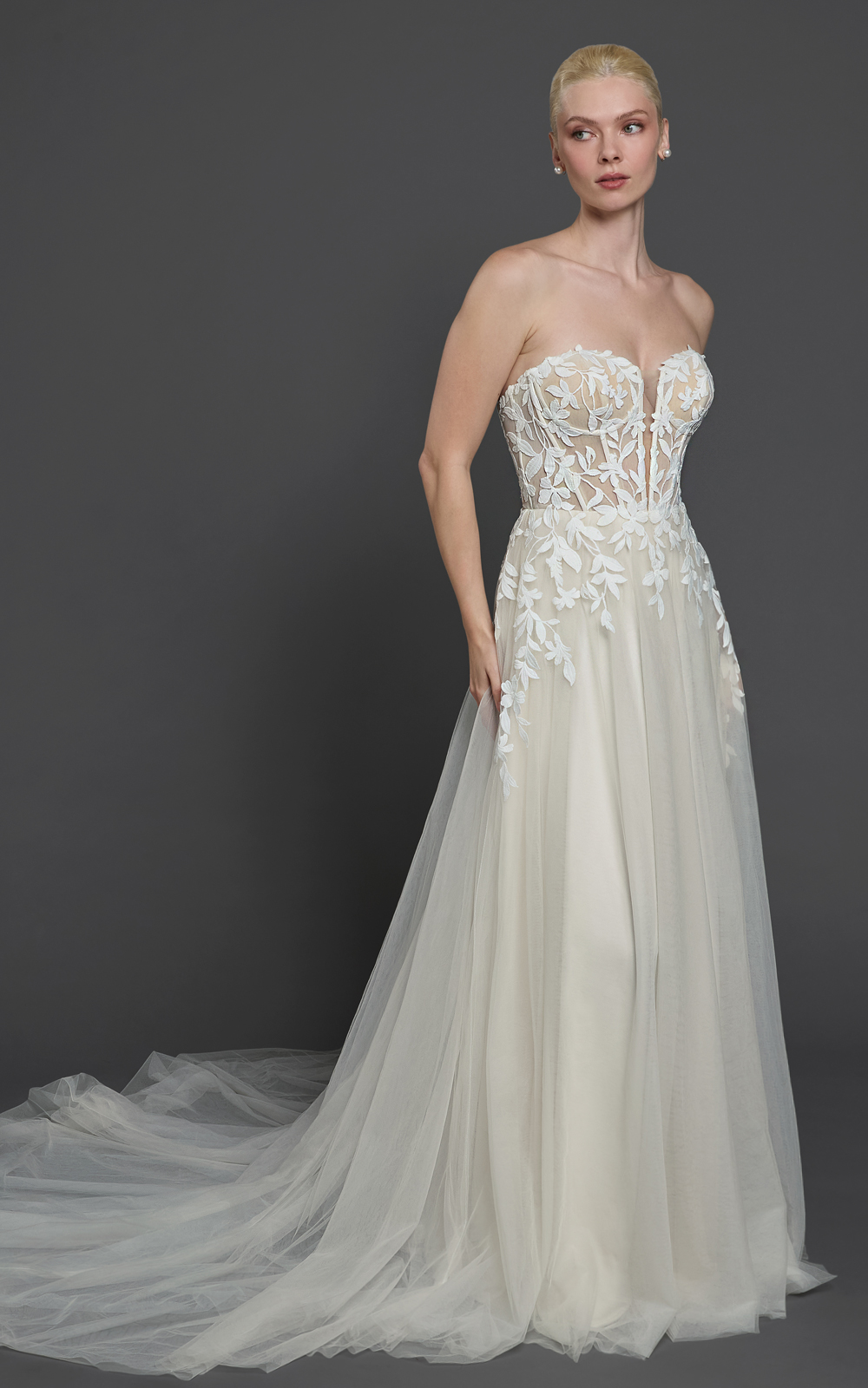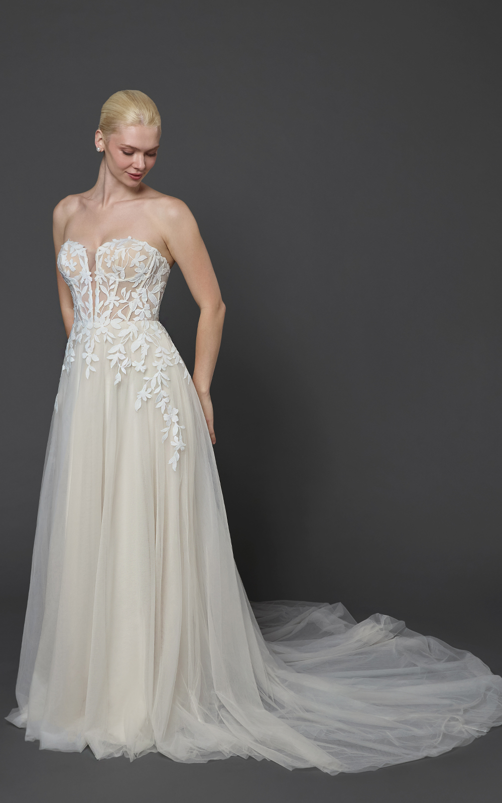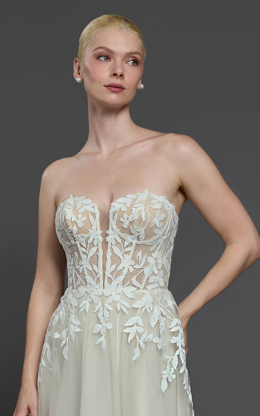 Note: Some styles have ease added for your comfort. If you are in between sizes, it is suggested to call and speak to a stylist or order the dress in custom size.